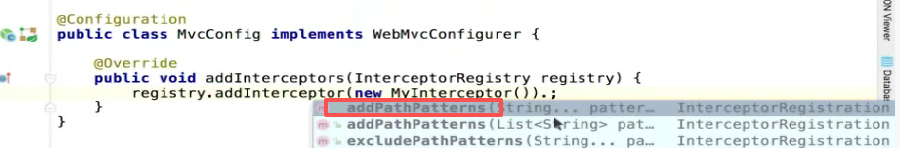 当spring扫描到@Configuration注解以后,就会调用addInterceptors()方法,并且把参数传进去