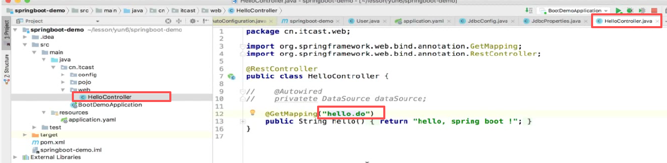 第二个包扫描也不用了 ,因为注解@SpringBootApplication里面自带了@ComponentScan注解代替了Component-scan标签。
