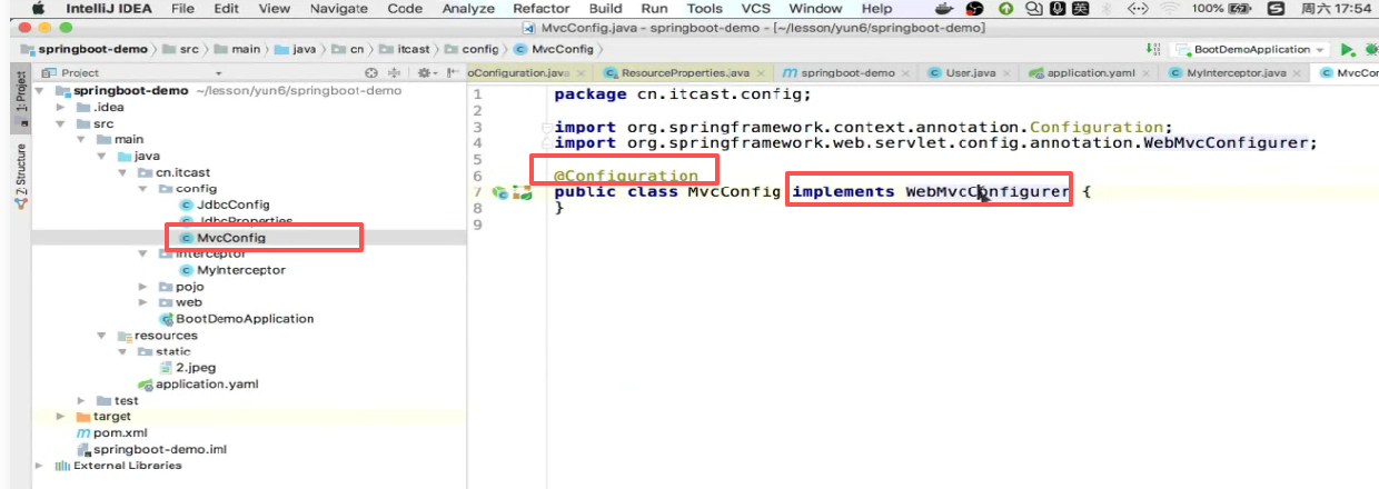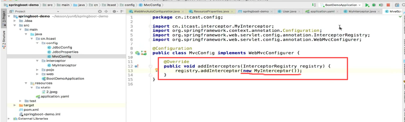 我们现在要配置拦截器:只需要实现addInterceptors()就可以了