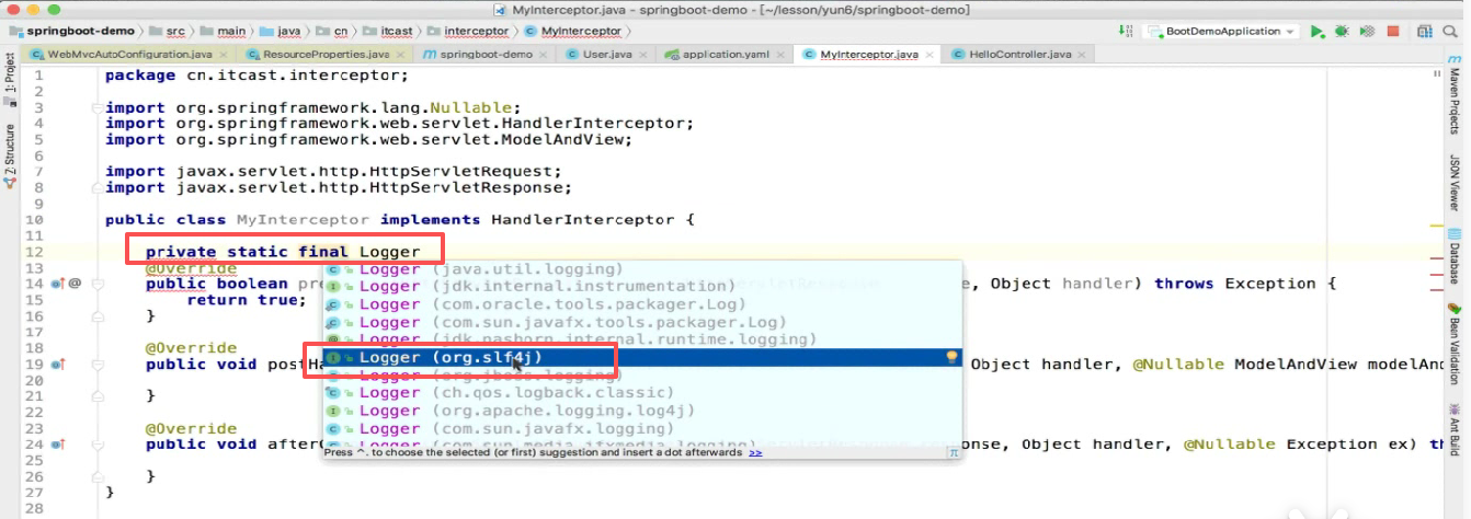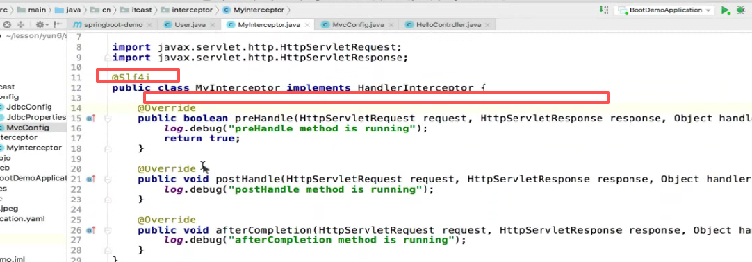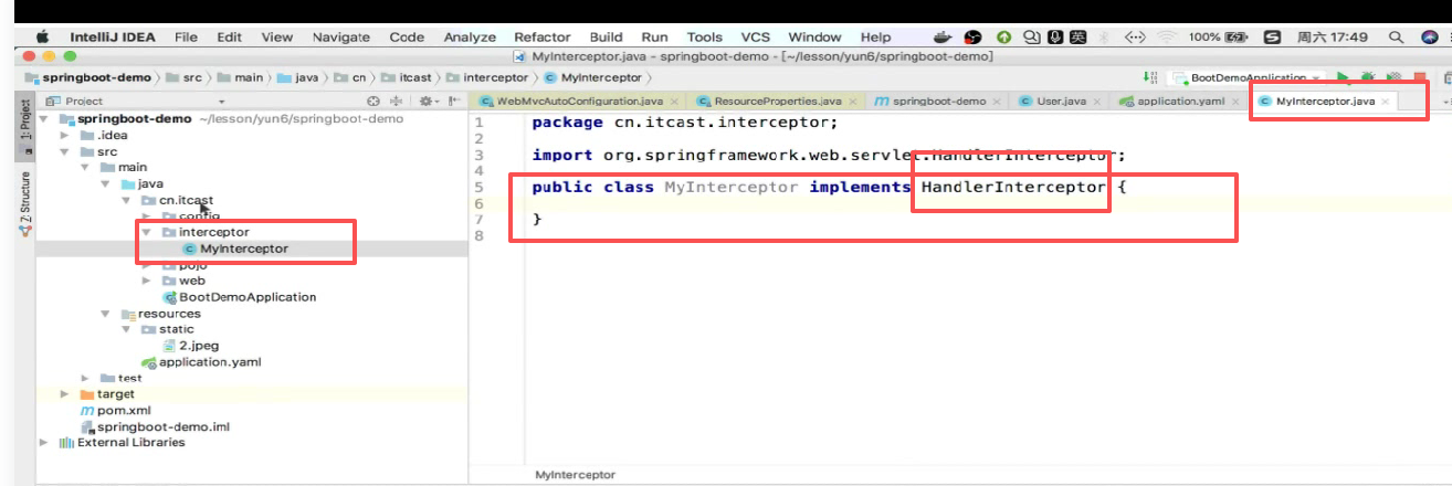 仍然要实现接口,自定义拦截器: