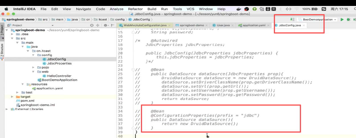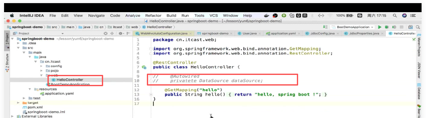 咱们现在先这么做,把这项目之前写的咱先把他注释掉,因为你不注释等一会他就会报错,因为我们依赖引的druid连接池,这些都要给他删了