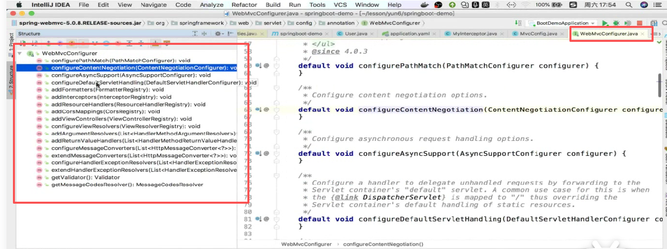 内容协调器,ServletHandling servlet处理器,拦截器,配置视图解析器,配置消息转换器,异常处理器等这里面全都有,这就是springmvc的高级配置类。