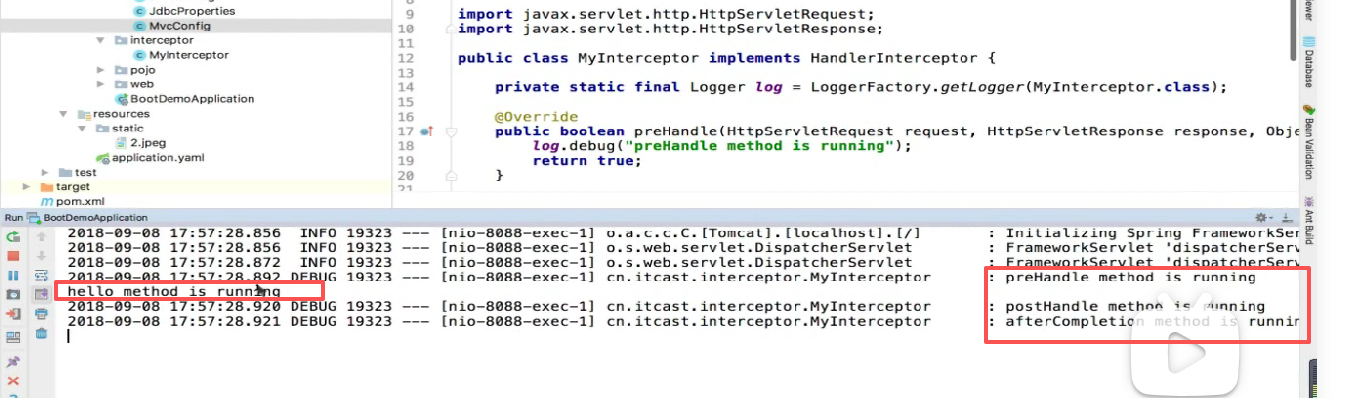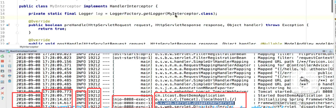 然后可以看到日志输出的顺序就是完全符合拦截器的执行顺序。