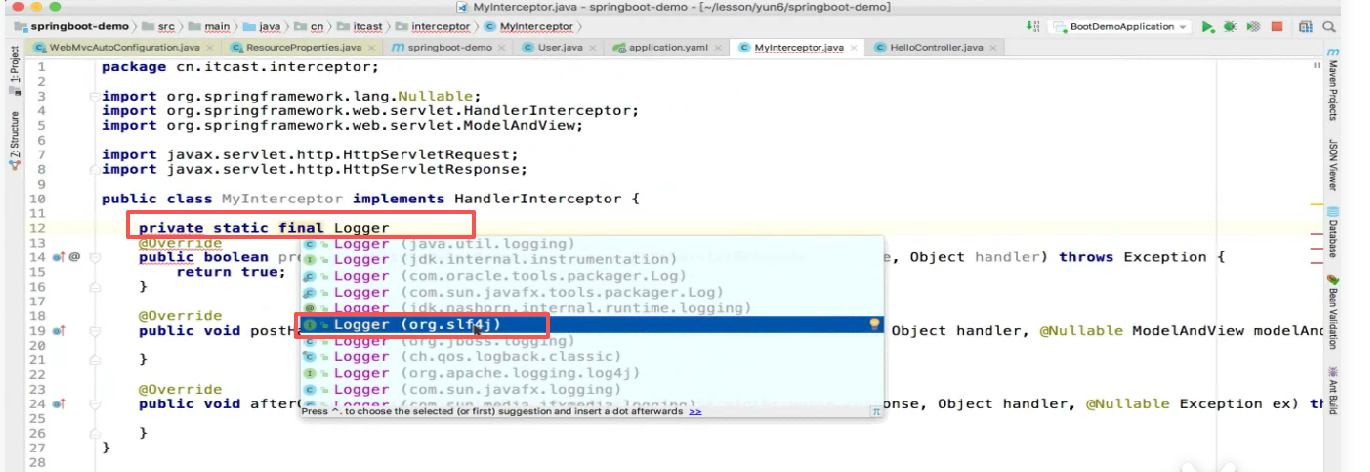 第二步 :自定义拦截器: