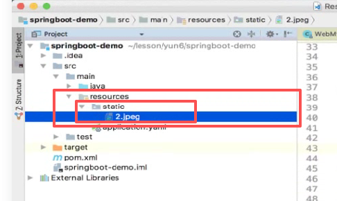 现在假如说我有个静态资源,我们现在是没有webapp的,那我们往哪放?