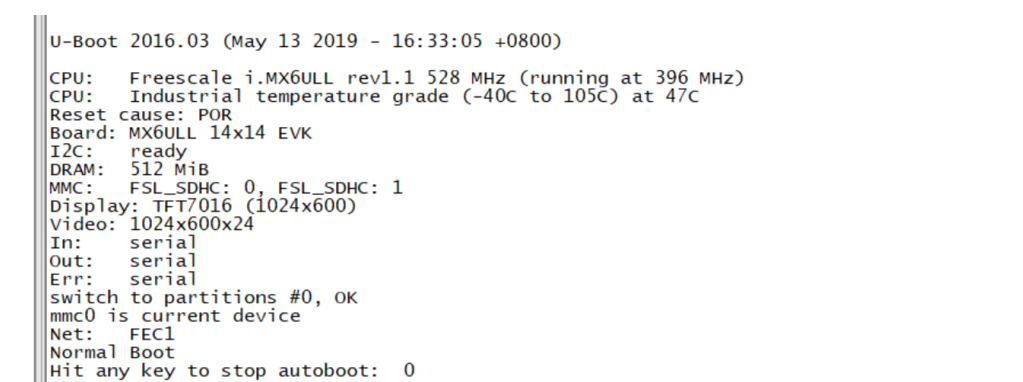 重新编译 uboot ,然后将 u-boot.bin 烧写到 SD 卡中并 启动,uboot 启动信息如下图 所示: