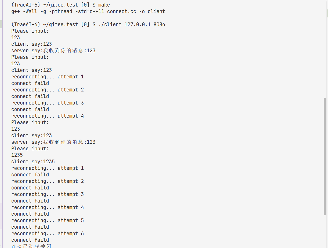 std::cout << "reconnecting... attempt " << i + 1 << std::endl;