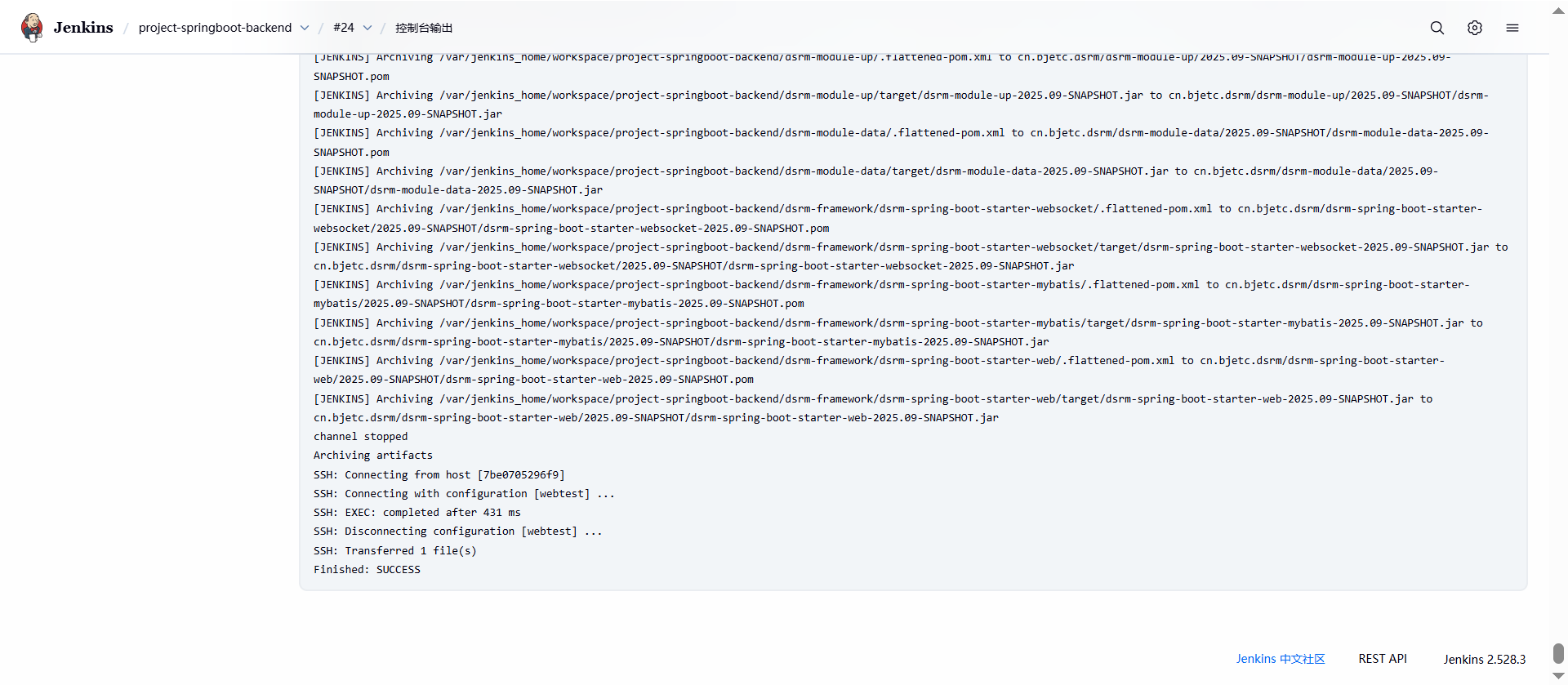 - Jenkins 构建日志 :构建后点击 Console Output ,搜索