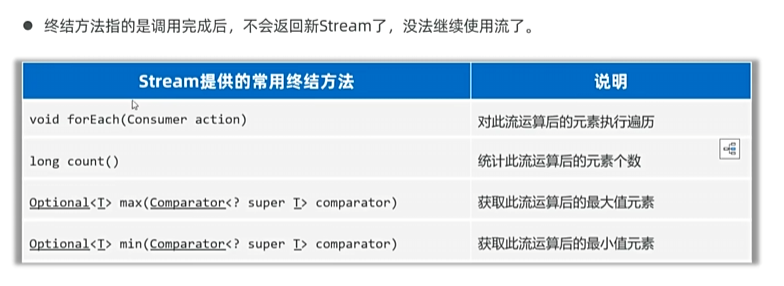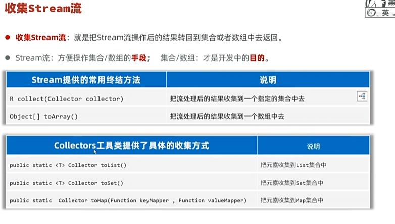流只是用来操作数据,Stream终结方法将结果转回到集合或数组中去。流处理完毕数据一定要收集到集合或数组中去;