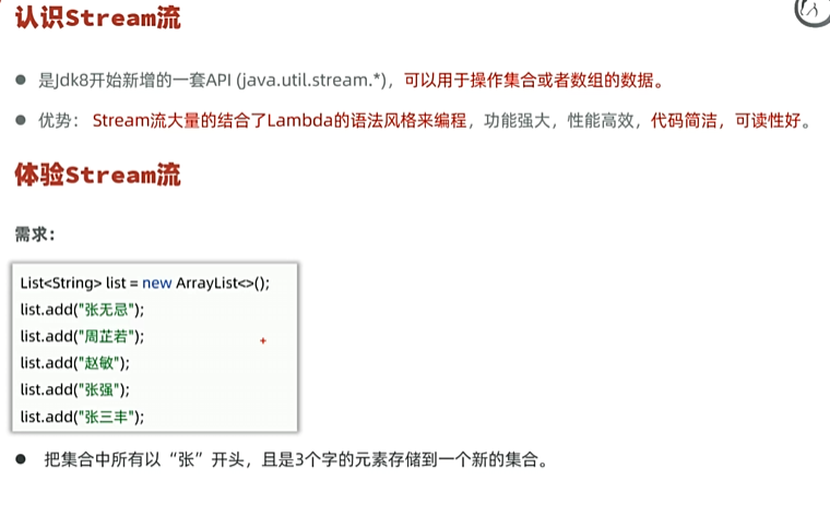 //目标:认识Stream流,掌握其基本使用步骤,体会它的优势和特点