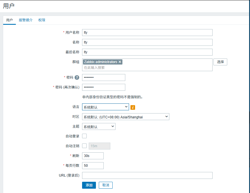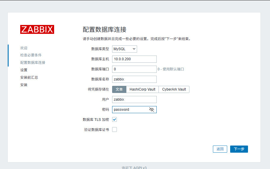 mysql> create user zabbix@'10.0.0.%' identified by 'password'; #创建 Zabbix 数据库用户