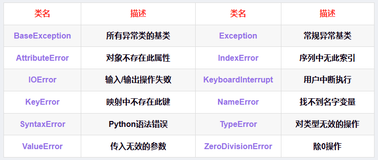 except:如果 try 块里的代码真的出错了(从出错开始就不会继续执行try之后的代码了),Python 就会跳到 except 块里执行这里的代码,而不是崩溃。