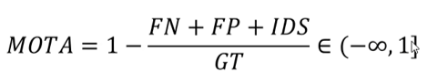MOTA: 同时考虑检测效果(虚警、漏检)和ID错误切换次数指标