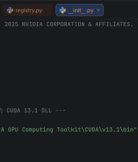 DLL 注入:由于我们要跨版本调用 CUDA 13 的 DLL,在文件开头手动加入系统级 CUDA bin 目录的路径。