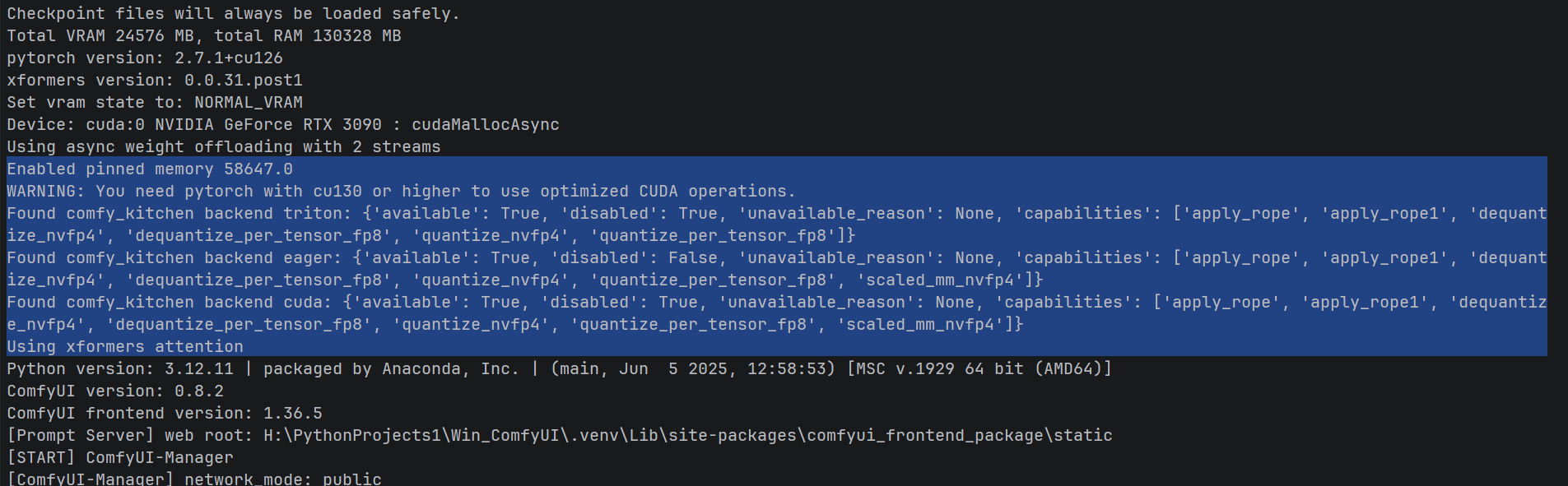WARNING: You need pytorch with cu130 or higher to use optimized CUDA operations.
