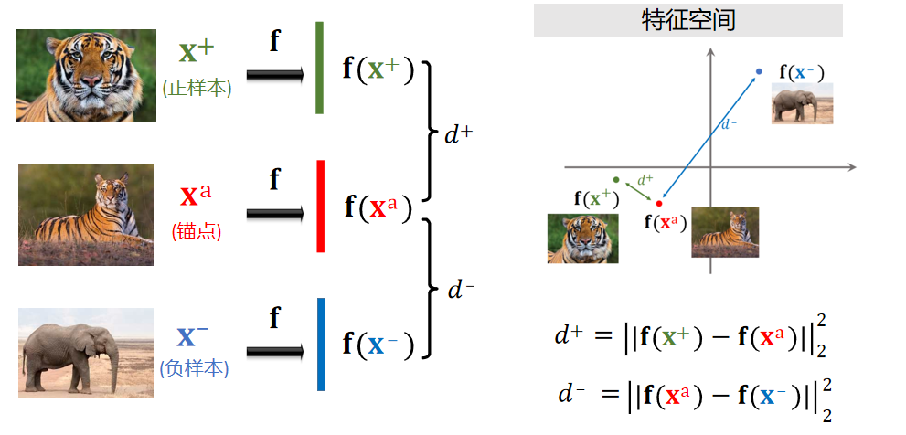 锚点样本与正样本的特征距离 < 锚点样本与负样本的特征距离 + 一个小的间隔
