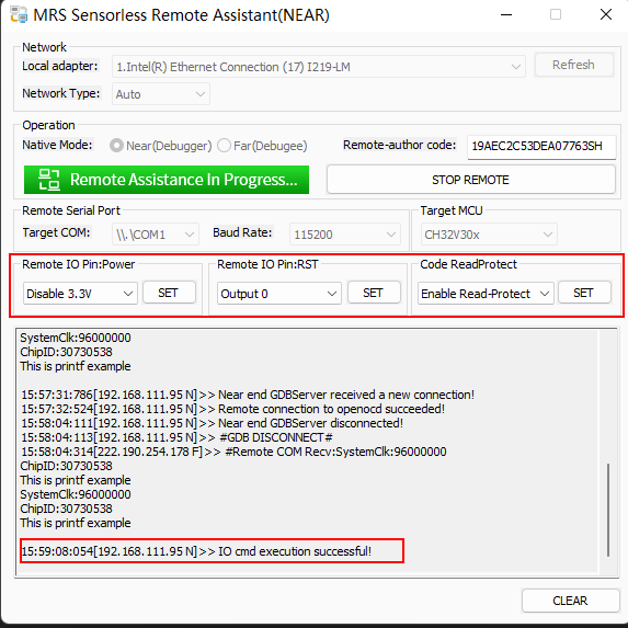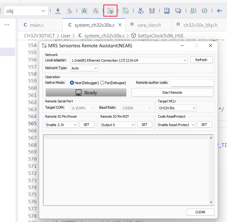 远程下载:远程下载指将近端编译生成的目标代码下载至远端设备,此时远端设备Link输出的信息会同时回显至MRS控制台和RemoteDbgTool