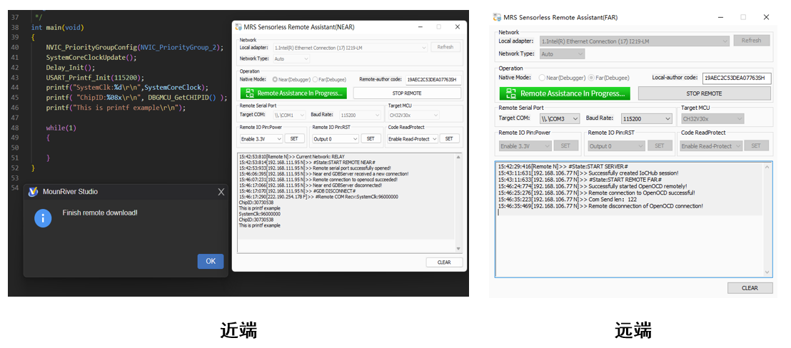RemoteDbgTool的使用分为远端和近端。近端可远程对远端设备进行代码(源码或目标代码)下载调试、IO控制,并可将远端调试信息回显至近端。