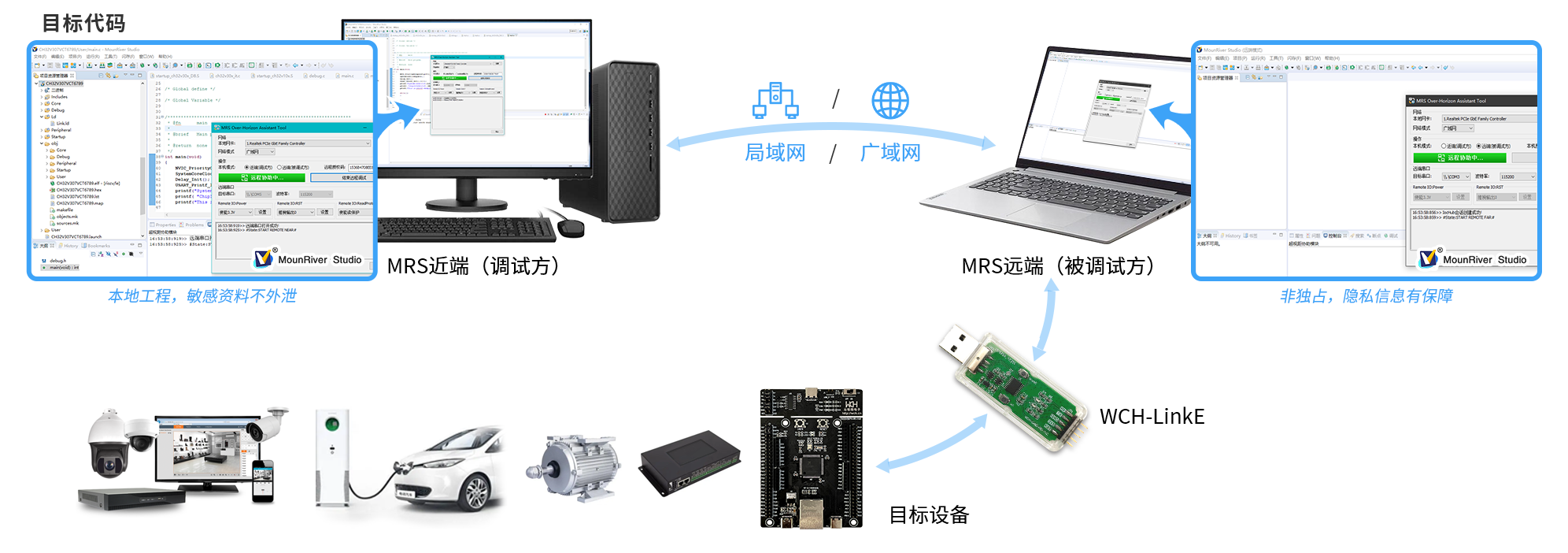 今天分享一个MRS2 远程调试的功能: 该功能支持对远程源码与目标代码进行调试和下载,实现调试信息的远程回显与远程 I/O 控制,并且支持广域网/局域网的自适应连接,无需手动配置网络连接参数。同时,对通信传输和Flash下载过程采用双重加密机制,确保数据安全可靠。