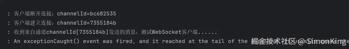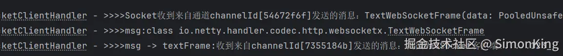 log.info(">>>>Socket收到来自通道channelId[{}]发送的消息:{}", channel.id(), msg);