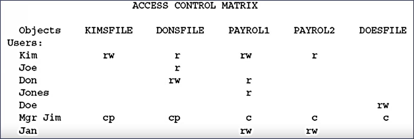 分类:基于主体(行)/客体(列)的访问控制矩阵信息