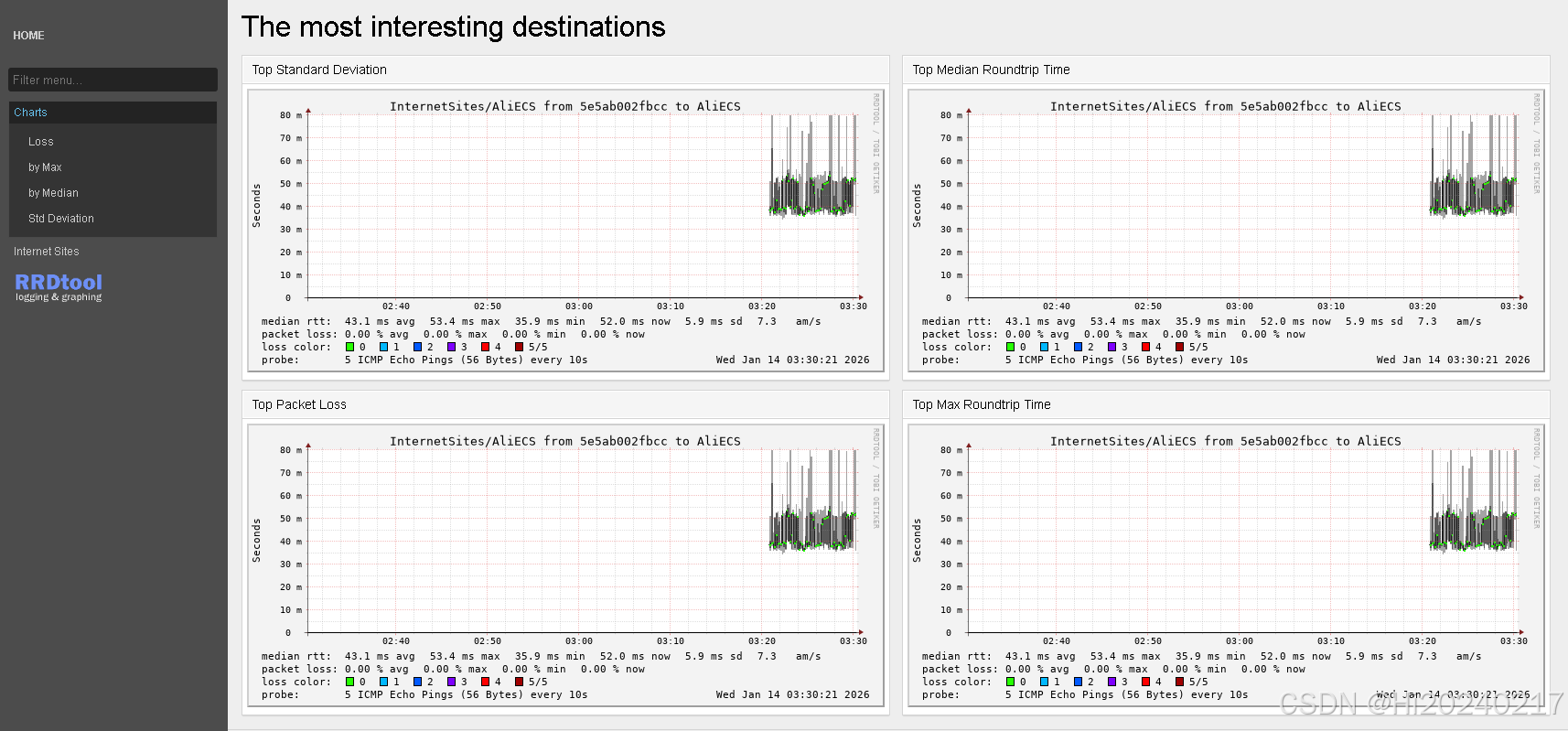无论是为了保障视频直播的流畅,还是确保远程服务器的稳定响应,亦或是单纯想了解自家宽带的真实质量,Smokeping都是一个简单而强大的起点。现在,就动手部署属于你自己的网络延迟监控平台吧!