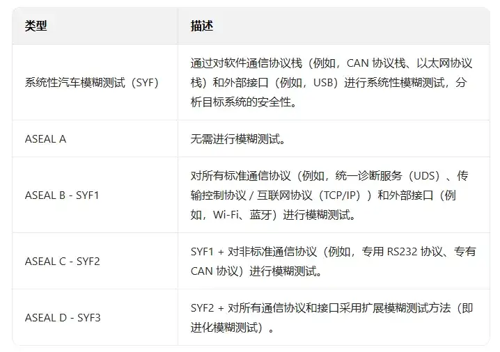 表 4、系统性汽车模糊测试的示例性 ASEAL 定义