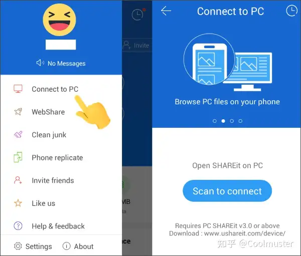 SHAREit 是一款跨平台文件共享程序,可让您在设备之间快速传输文件。SHAREit 允许您将文件从电脑传输到手机。要通过 SHAREit 将文件从电脑传输到Android ,请按照以下步骤操作: