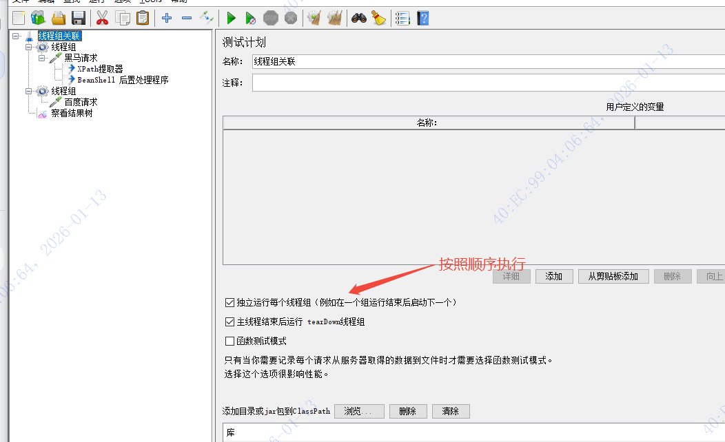 变量作用局域限于前线程组,其他线程组不可以直接调用。可以将请求A中提取的结果导出到公共空间(可以被不同线程组共享),请求B再从公开空间调用该变量,相当于全局变量。