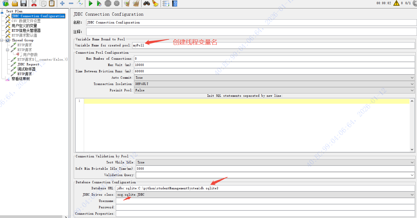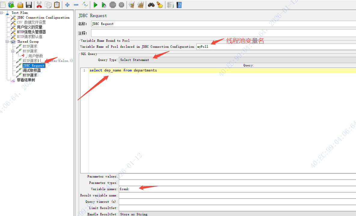 3.通过JDBC Request请求向数据库发送 SQL语句并接收提取响应结果