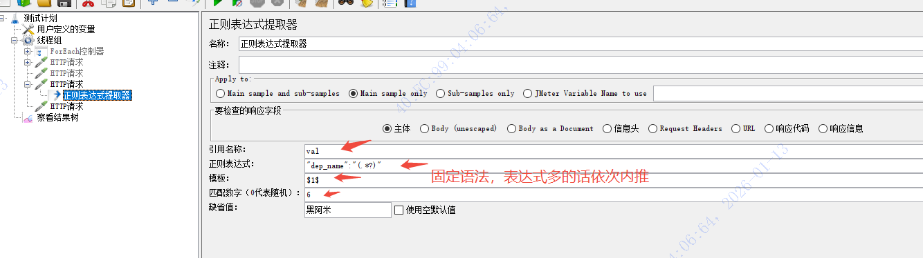4.结果获取规则可以通过Debug Sampler 组件查看
