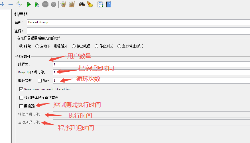 注:添加循环控制器,子级添加取样器 (和之前现实不同,控制器和取样器存在父子级关系)