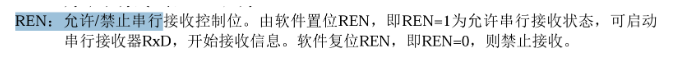 - 将SCON寄存器中的REN位置1,代表允许串口接收数据