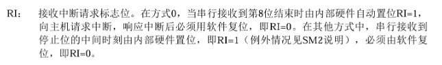 - RI位,用来查询8位数据是否接收完毕,接收完毕后会自动置1;必须用软件清0