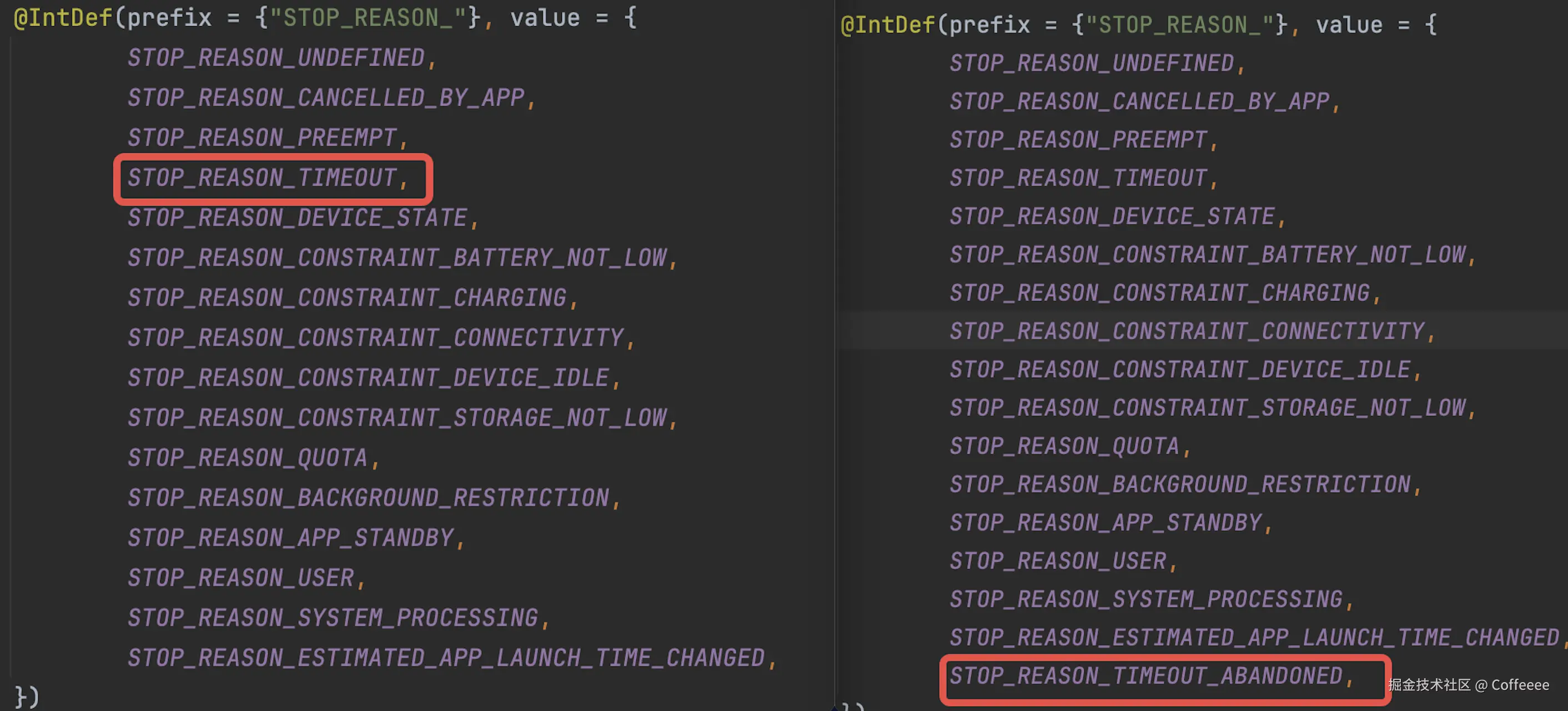 在Android16之前,如果想要知道作业停止的原因,为什么会产生废弃作业,就必须去监听STOP_REASON_TIMEOUT这个字段,而在Android16中,这个字段被废弃了,改为STOP_REASON_TIMEOUT_ABANDONED,相关应用需要为此做相应适配