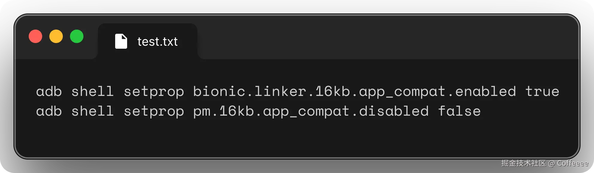 这俩命令用于强制打开16kb向后兼容模式,当设置完后,再一次启动应用就不会看到那个警告弹框了,第一条命令是控制加载库的方式,第二条命令是用于控制apk的安装方式