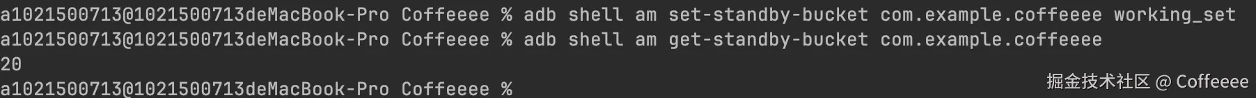 如果得到结果是10就说明你的应用处于活跃区,不受系统限制,任何大于10的数字,都说明你的应用会被系统限制,或者你想要看看你的应用处于某个分区会有哪些行为,那么可以尝试如下命令
