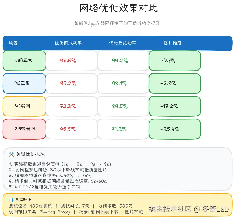 电量优化和网络优化看似是两个独立的主题,但它们有着密切的关系:网络请求是移动设备最大的电量消耗源之一。一个糟糕的网络策略不仅让用户体验变差,还会疯狂吃掉手机电量。