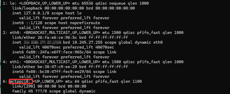 dev mctppci0 index 6 address 00:00:00 net 1 mtu 64 up