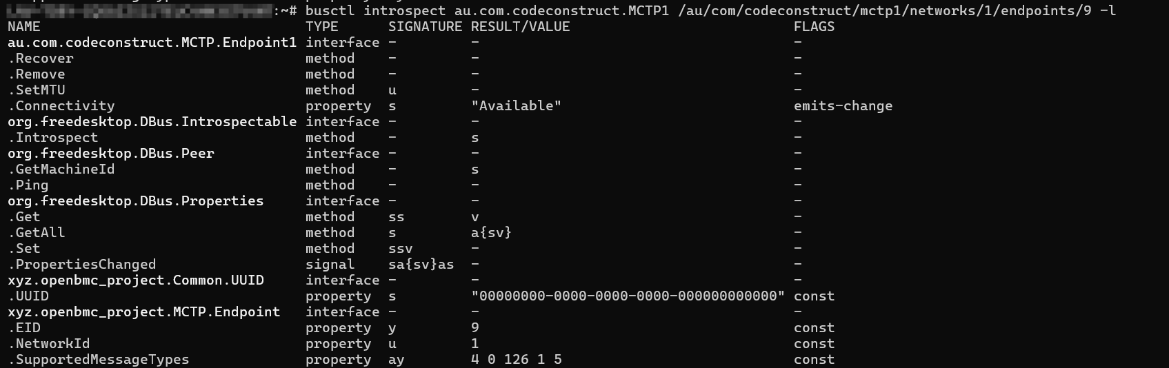 eid min 29 max 29 net 1 dev mctppci0 mtu 64