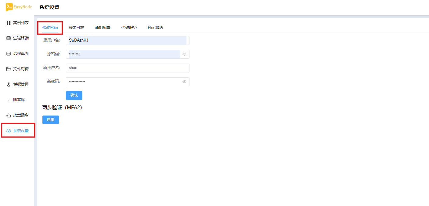 登录后可以在系统设置,修改账户密码: