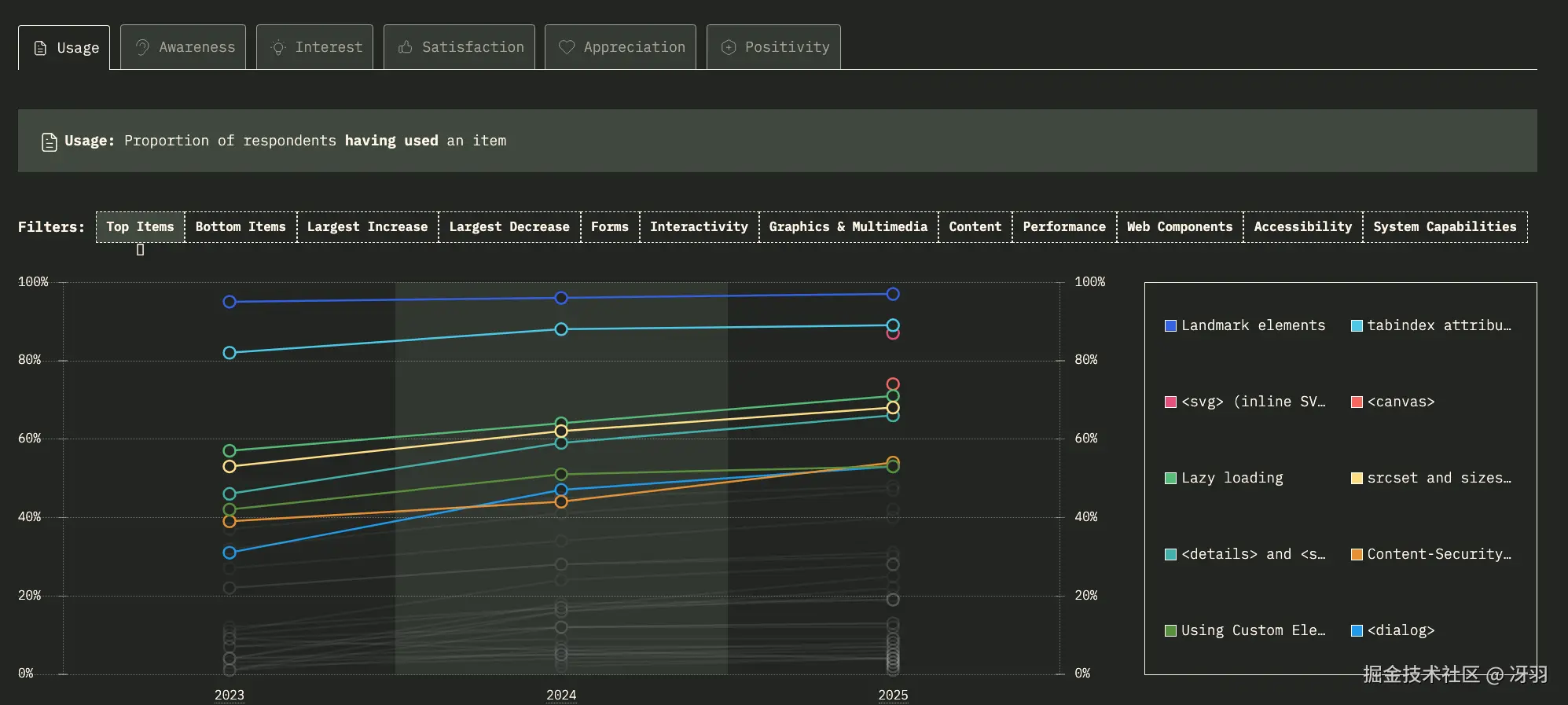 这份报告收集了全球数万名开发者的真实使用经验和反馈,堪称是 Web 开发领域的"年度风向标"。
