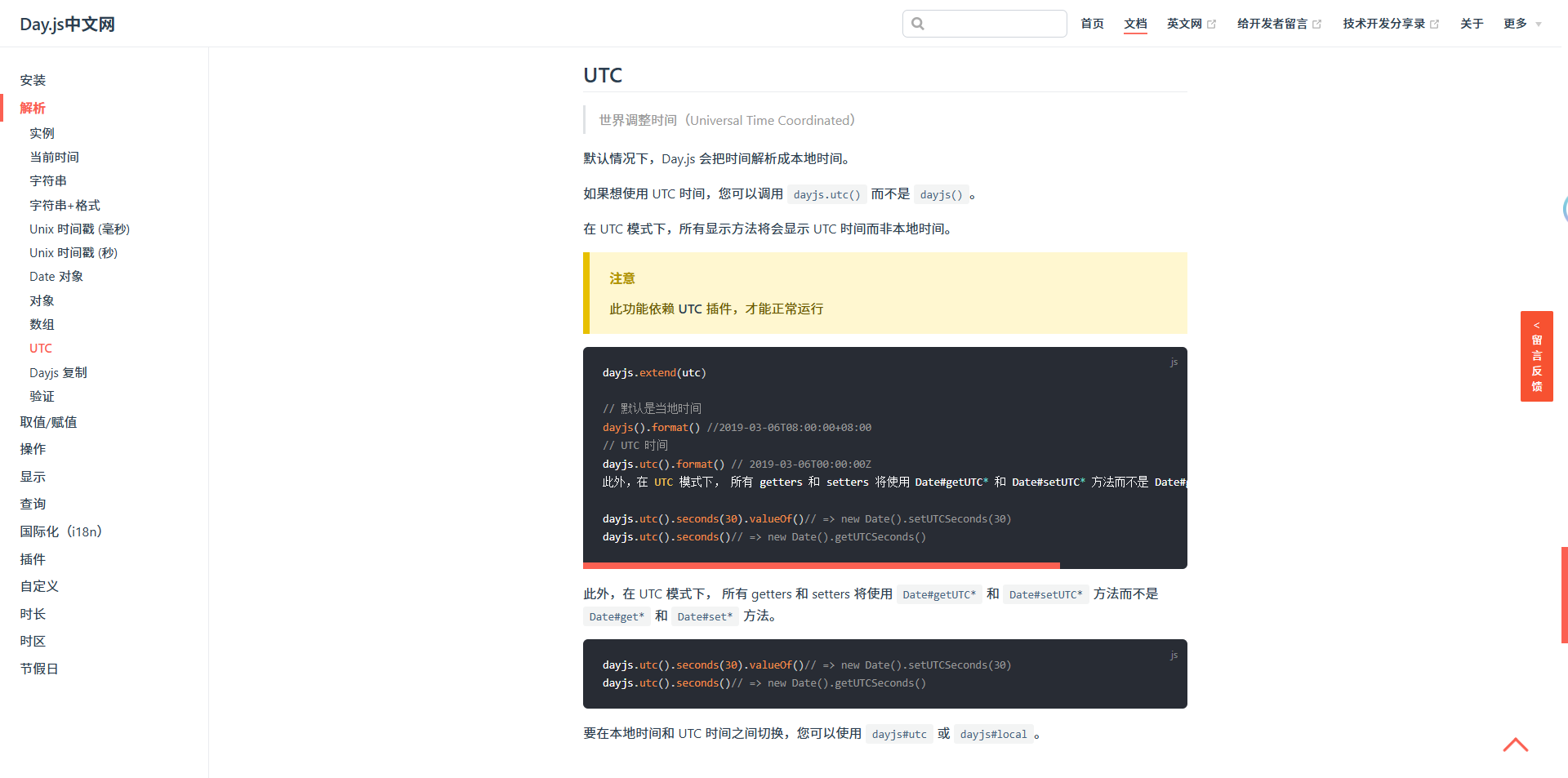 2、官方文档 - 中文网:安装 | Day.js中文网