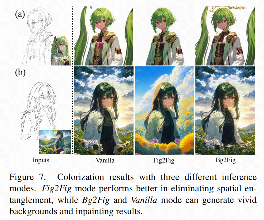 这模式在角色上色上优于 Vanilla;背景生成上往往比 Fig2Fig 更自然(因为没被强行用背景 embeddings 约束)。