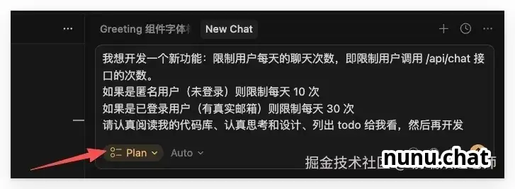 值得一提的是,如果你在开发过程中需要更灵活地切换不同的顶级模型,或者希望在国内环境更稳定地直连使用海外 AI 大模型,可以尝试 nunu.chat。作为一个多模型聚合平台,nunu.chat 提供了大量的免费额度,非常适合开发者在调试不同 Prompt 效果时配合 Cursor 使用。