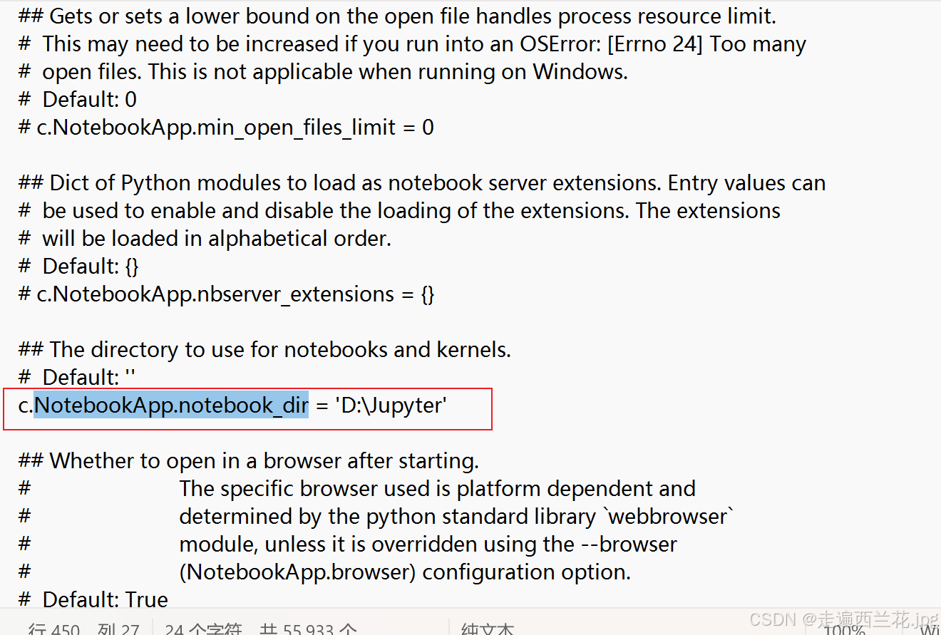修改NotebookApp.notebook_dir,去掉前面的#,在引号中添加自己要修改的路径,最后保存退出