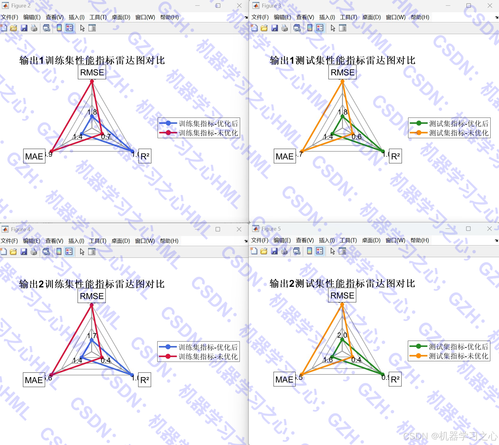 - 结果可视化:包括优化过程曲线、雷达图对比、预测对比图、拟合图、误差分析图等。