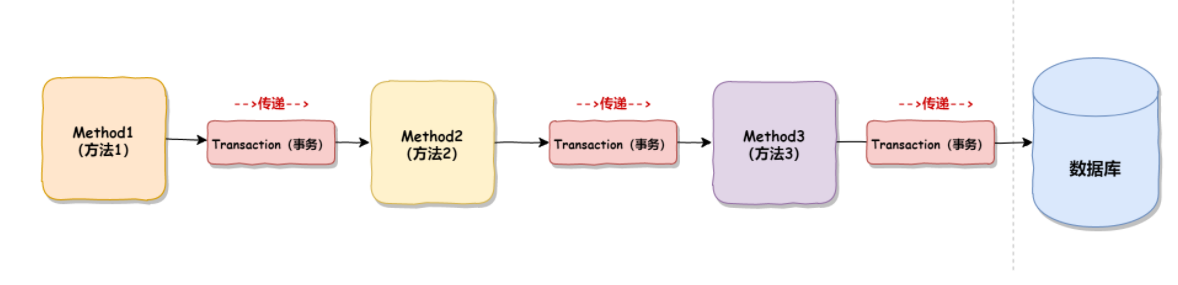⽽事务传播机制解决的是⼀个事务在多个节点(⽅法)中传递的问题