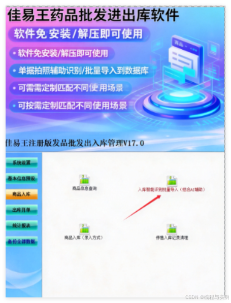 针对上述行业痛点,佳易王药品批发进出库管理系统软件增加了智能批量导入功能。该工具可以"预设识别指令"机制,实现了药品入库信息的自动化采集与处理。
