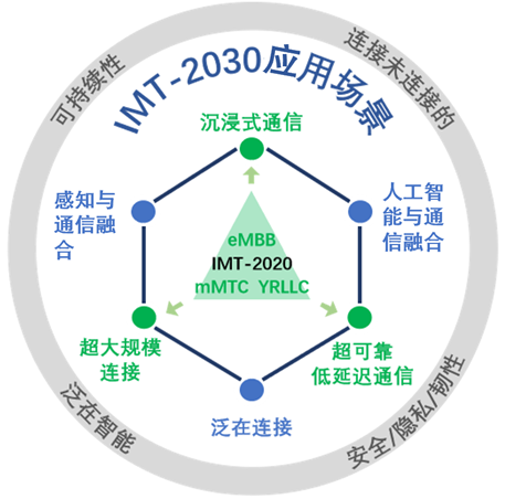 随着6G的不断发展,对应的在应用场景和目标也是在不断的发展。相较之前5G的三大应用场景: eMBB(增强型移动宽带)、uRLLC(高可靠低时延)、mMTC(海量机器类通信) 。6G在5G的应用场景之下,进一步进行了扩展和补充,得到了对应6大应用场景,6G 六大应用场景------沉浸式通信、超高可靠低时延、海量通信、泛在连接、通感一体化、通智算一体化 。